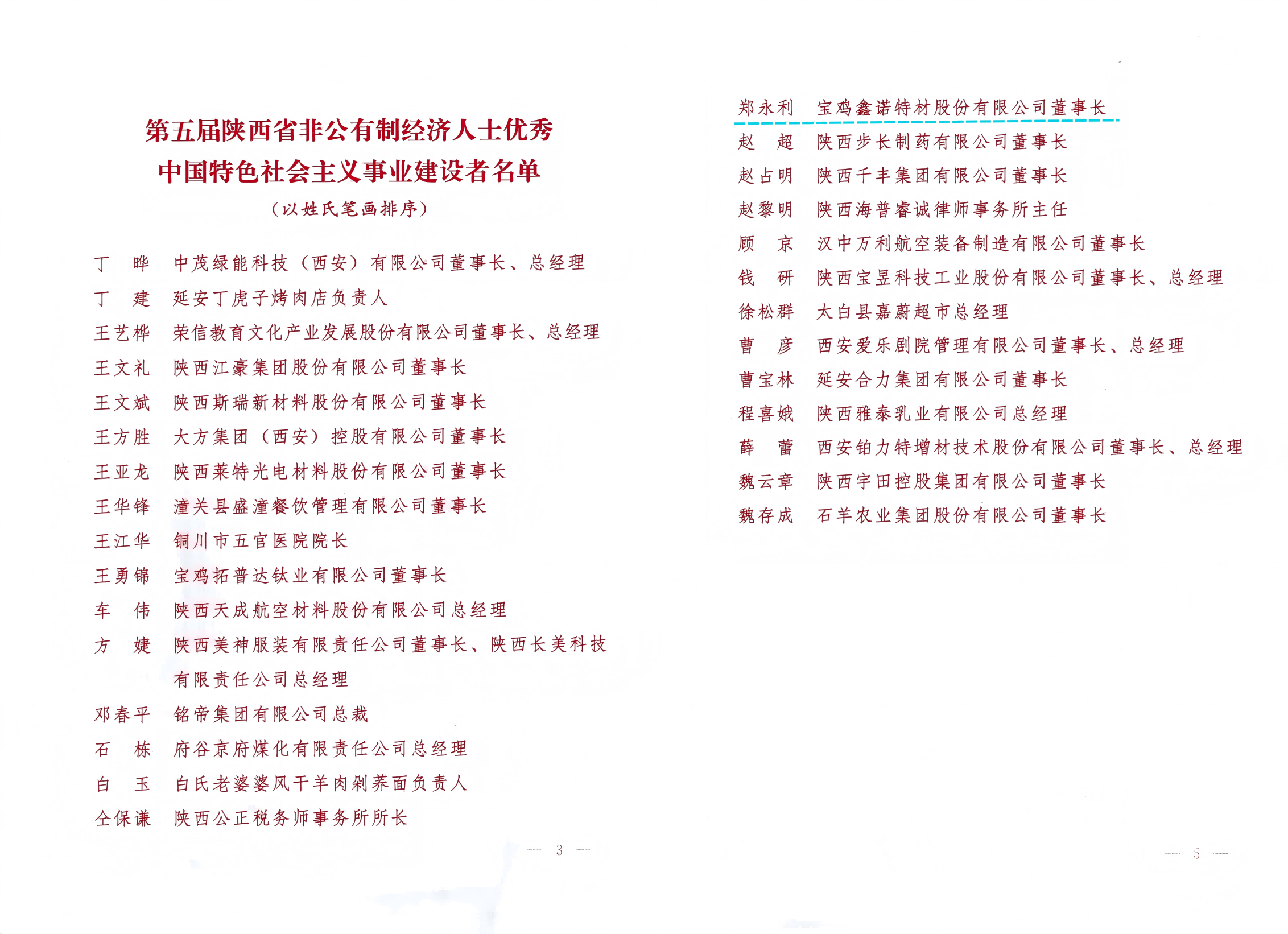 近日,中共陜西省委統戰部、陜西省工業和信息化廳等多部門聯合對一批為經濟社會發展做出突出貢獻的非公有制經濟人士進行表彰。寶雞鑫諾特材股份有限公司黨支部書記、董事長鄭永利等50名同志被授予“陜西省非公有制經濟人士優秀中國特色社會主義事業建設者”稱號。該評選旨在表彰我省非公有制經濟領域中“愛國敬業、守法經營、創業創新、回報社會”的先進典范,樹立鮮明導向,激勵廣大民營經濟人士在推進中國式現代化建設的陜西實踐中再立新功。鄭永利的當選,不僅是對其個人堅守實業、開拓創新精神的認可,更是對其所代表的新材料領域民營企業,在突破關鍵技術、保障產業鏈安全方面突出貢獻的高度認可。
